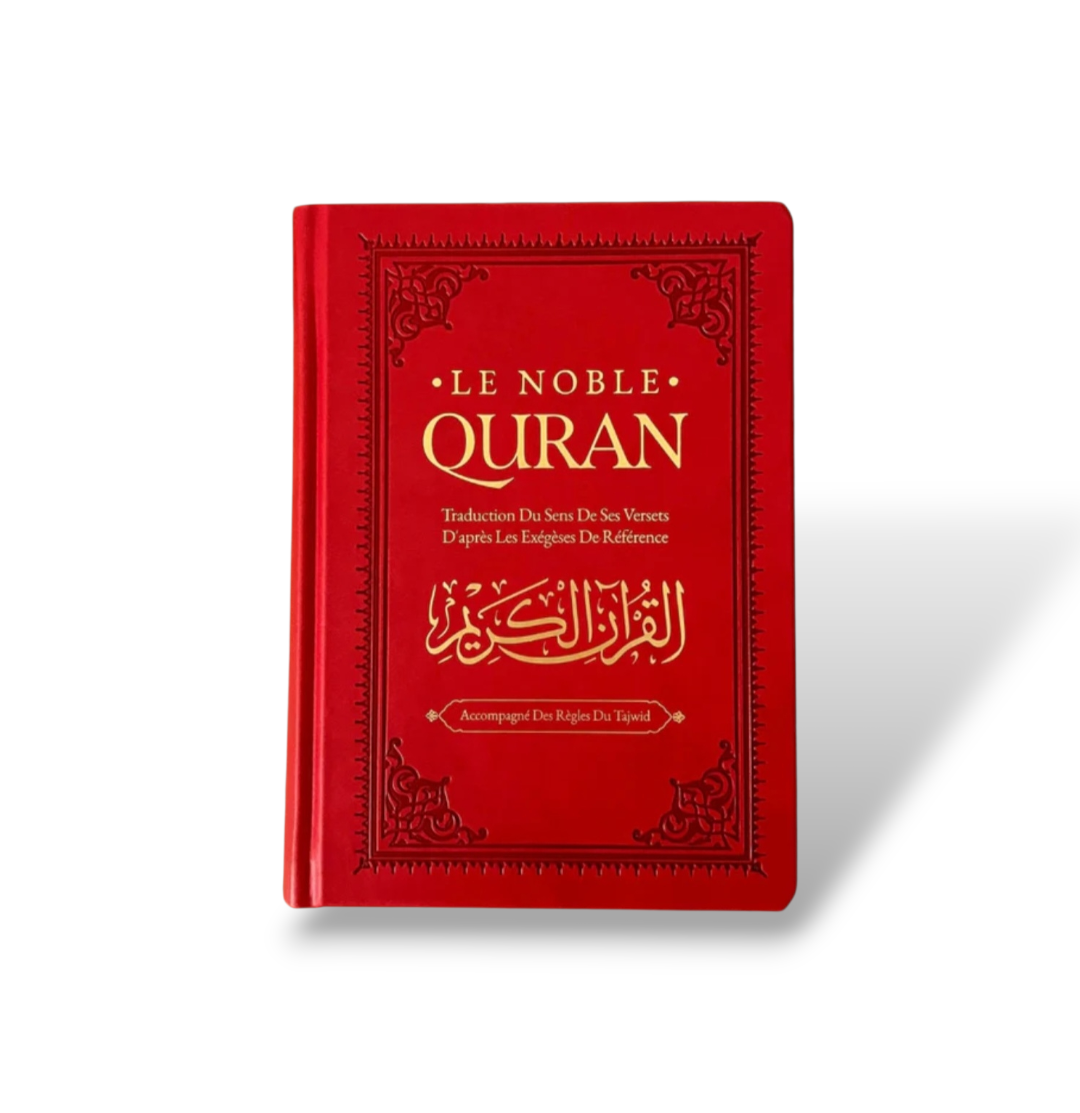 Saint Coran selon la lecture de Hafs d’après ‘Asim, avec traduction française, règles de tajwid et couverture cuir élégante.